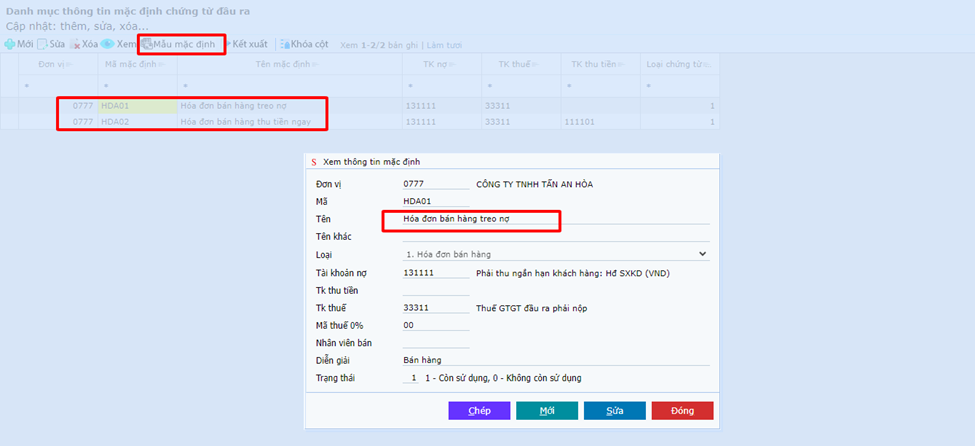 Chọn Mẫu mặc định để Sivip cung cấp cho bạn những mẫu chứng từ đã khai báo sẵn, bạn có thể thêm mới hoặc sửa những mẫu này cho phù hợp với doanh nghiệp mình.