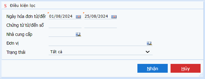 Bước 2: Chọn Xử lý hóa đơn đầu vào/đầu ra và khoảng thời gian muốn lấy hóa đơn về.
